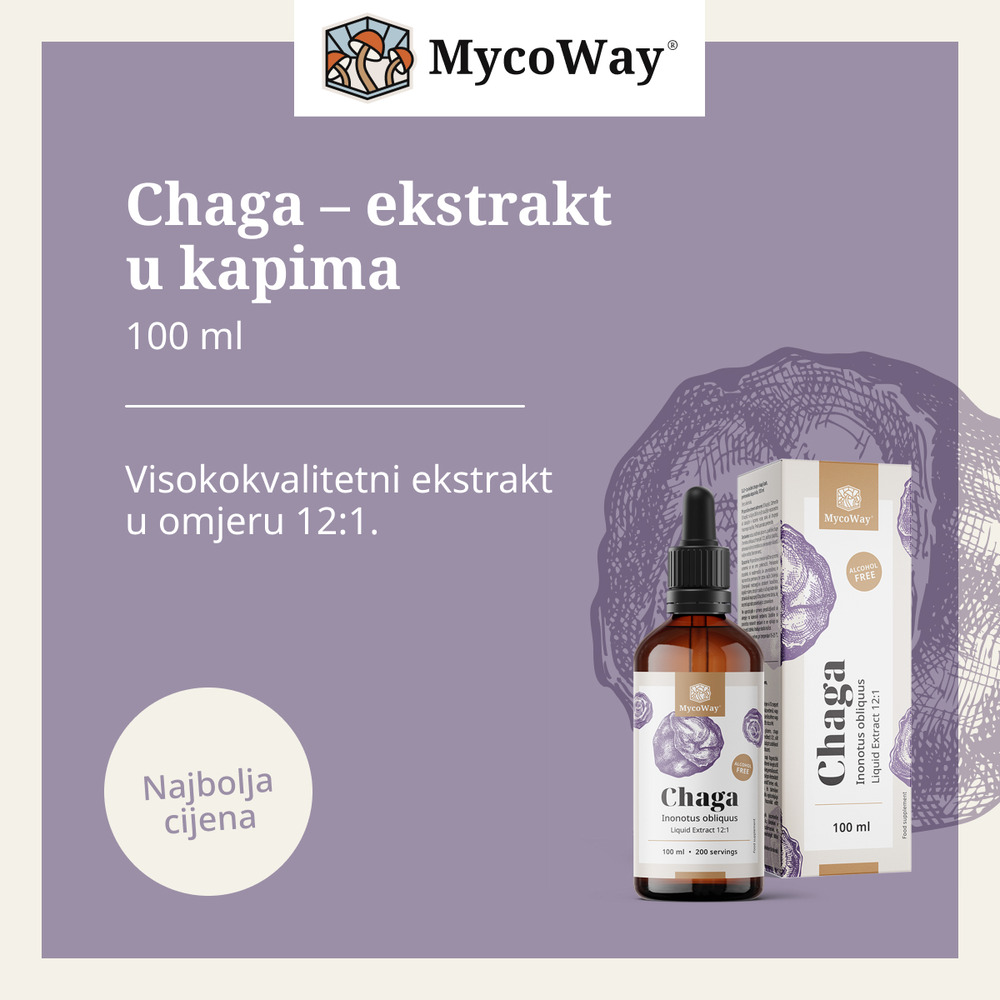 To vam dodatno olakšava tekući ekstrakt chage u kapljicama, koji, pakiran u tamnoj bočici s kapaljkom, kombinira tradiciju i suvremenu upotrebljivost.